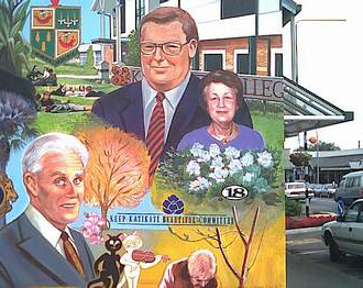 The murals of Katikati are an interpretation of the town's history, of its pioneers and their vanished way of life. They demonstrate the town’s achievements and aim to serve as an inspiration for future development and growth. From the original three murals painted in 1991, the town now features over twenty magnificent paintings on the external walls of its public buildings. Katikati Open Air Art Inc. prides itself on creating the first Open Air Art Gallery in New Zealand. After more than ten years, the murals are an integral part of the town’s unique atmosphere and have helped it claim the title of ‘New Zealand's Most Beautiful Small Town’.